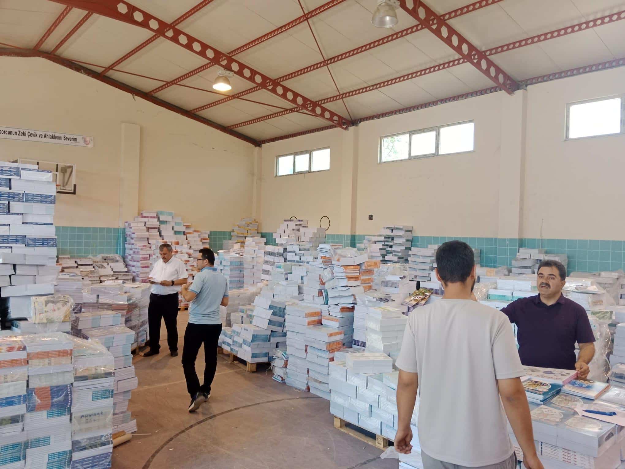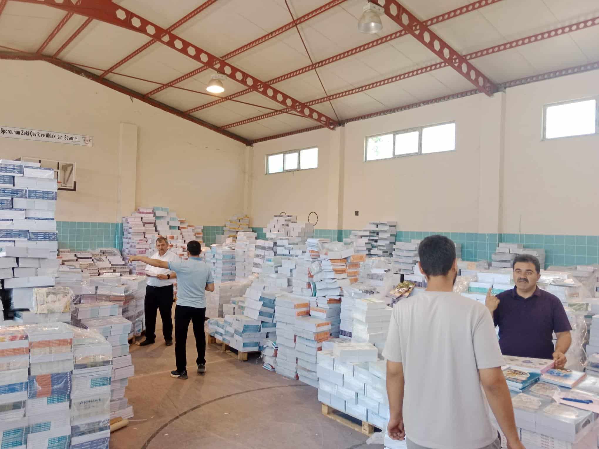 Müdürümüz Mükremin KARASU, Şube Müdürümüz Zeki ATİK ile birlikte yeni eğitim-öğretim yılı hazırlıkları kapsamında müdürlüğümüze ait kitap deposunu ziyaret ederek incelemelerde bulundu. Milli Eğitim Bakanlığımız tarafından öğrencilerimize gönderilen ücretsiz ders kitapları ders zilinin çalması ile öğrencilerimizle buluşacaktır.
